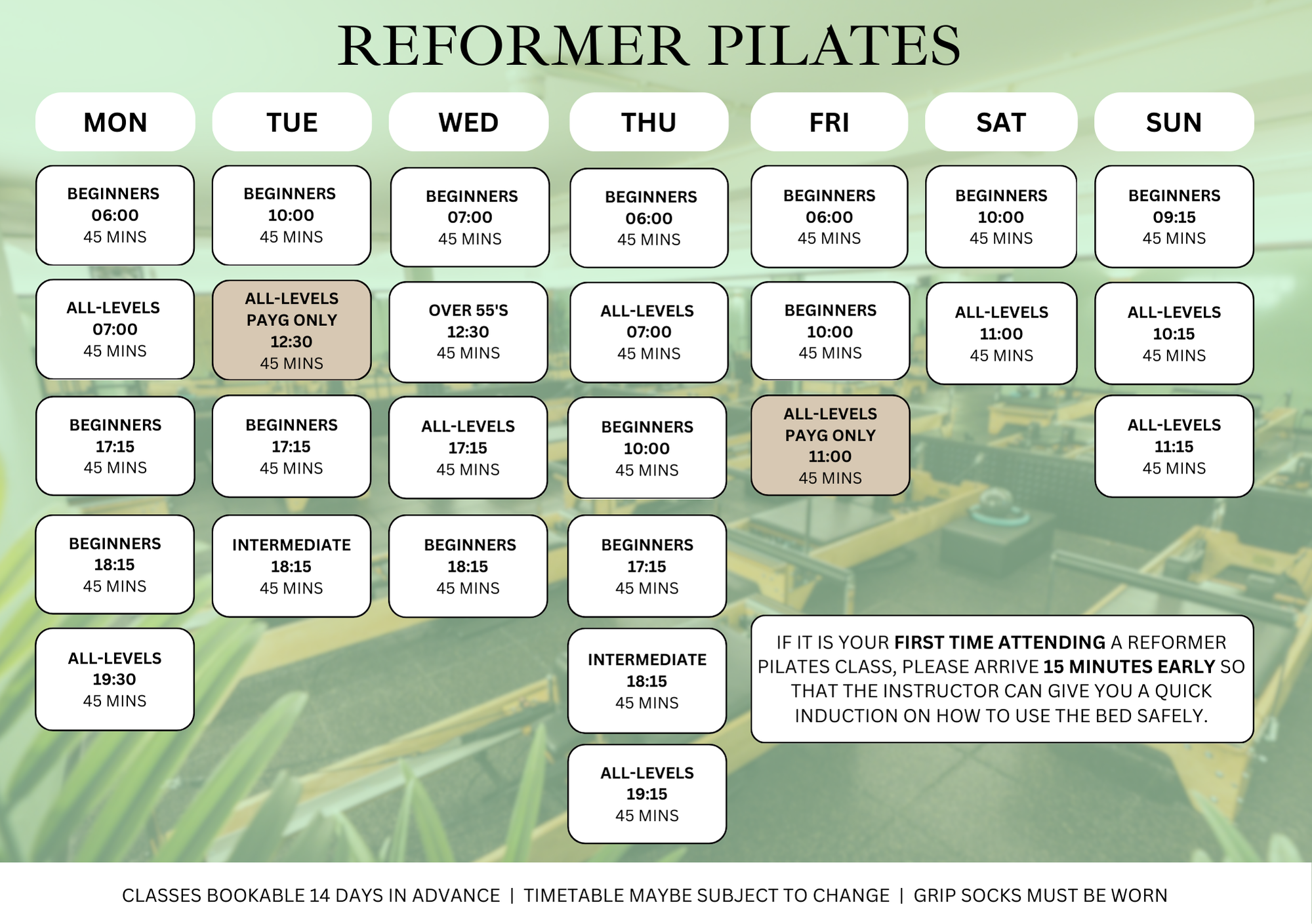 We are excited to announce that we have just opened up our Reformer Pilates Studio, which contains 10 beds, including 2 Tower Beds.